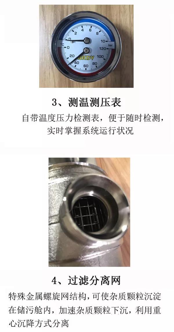水中杂质直径在0.05-1mm之间,普通过滤器无法过滤0.5mm以下杂质,杂质沉积会造成地暖不热、阀门失灵、水泵卡死烧泵、壁挂炉效率降低等一系列问题。